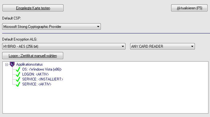 | 3. | Default CSP | Für den Zugriff auf eine Zertifikatschipkarte oder -Token bieten die Hersteller als Middleware einen CSPs (Crypto Service Provider)